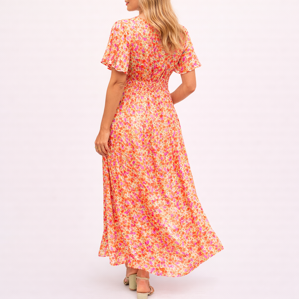 The soft flowing silhouette moves naturally with your body, while the defined waist creates shape without clinging. Lightweight and breathable, it’s perfect for warm days, garden gatherings, dinners, and special occasions.